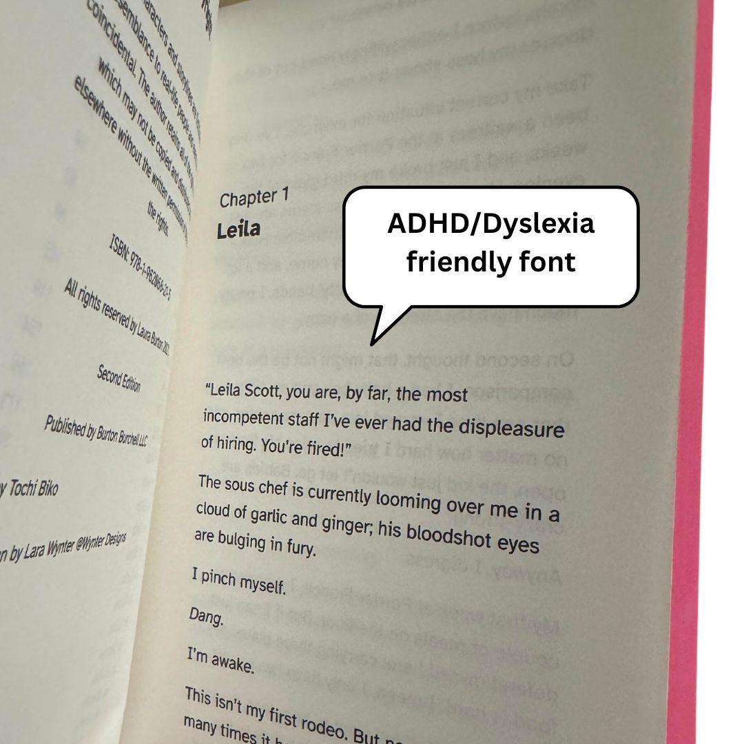 and Surprised by Love 3 book series, also with pink sprayed edge paper and a glossy spot UV finish on the title and author name. ALSO features an ADHD/Dyslexic friendly font.