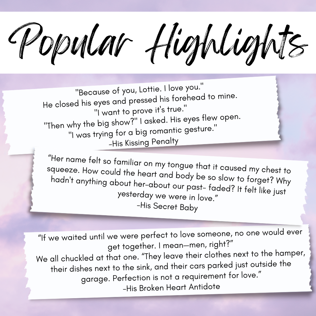 My heart plummeted, and I was suddenly the invisible sixteen-year-old with a massive crush on my older brother’s best friend. He hadn’t seen me back then, and he didn’t see me now. I may not be a doctor like Carter, or a professional athlete like Liam, or a sheriff like Mason, but that didn’t mean I wasn’t amazing in my own right. If people could just see past my hugely successful siblings…
